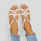 The Jacinta Sandals blend bohemian charm with a touch of sparkle. Featuring braided straps and dazzling stone embellishments, they strike the perfect balance between laid-back and chic.