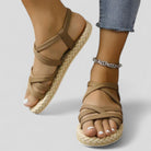 The Lurdes Sandals blend urban style with natural charm. Featuring a jute-style sole and wide crisscross straps, they offer a laid-back yet refined look that’s perfect for sunny days.
