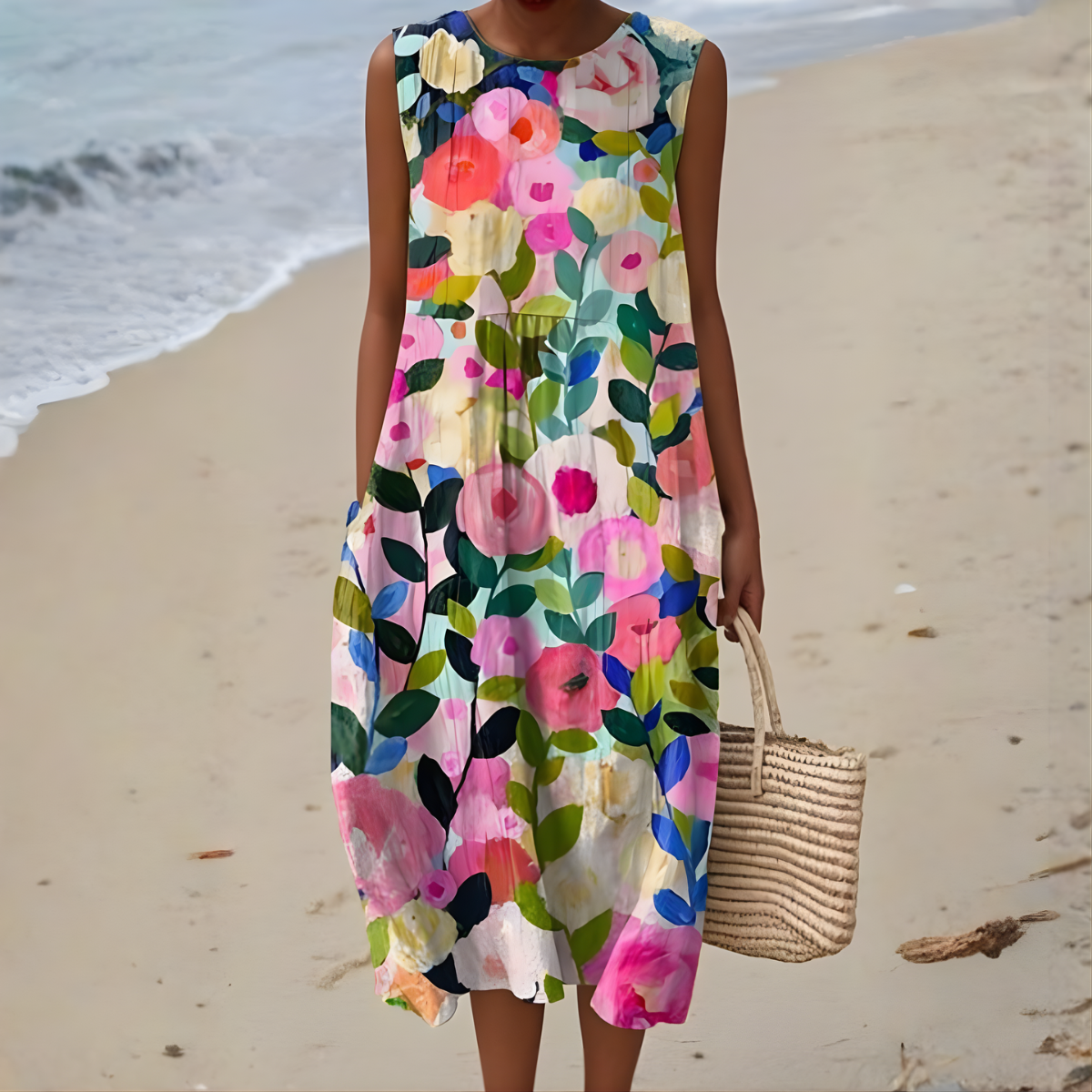 - Design: Sleeveless with vibrant floral print