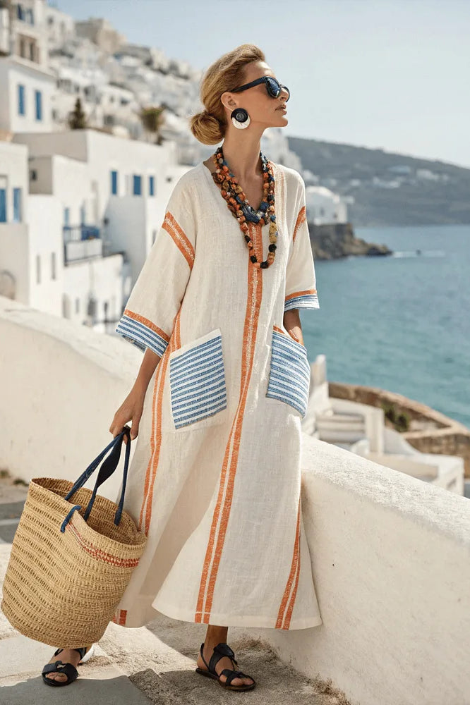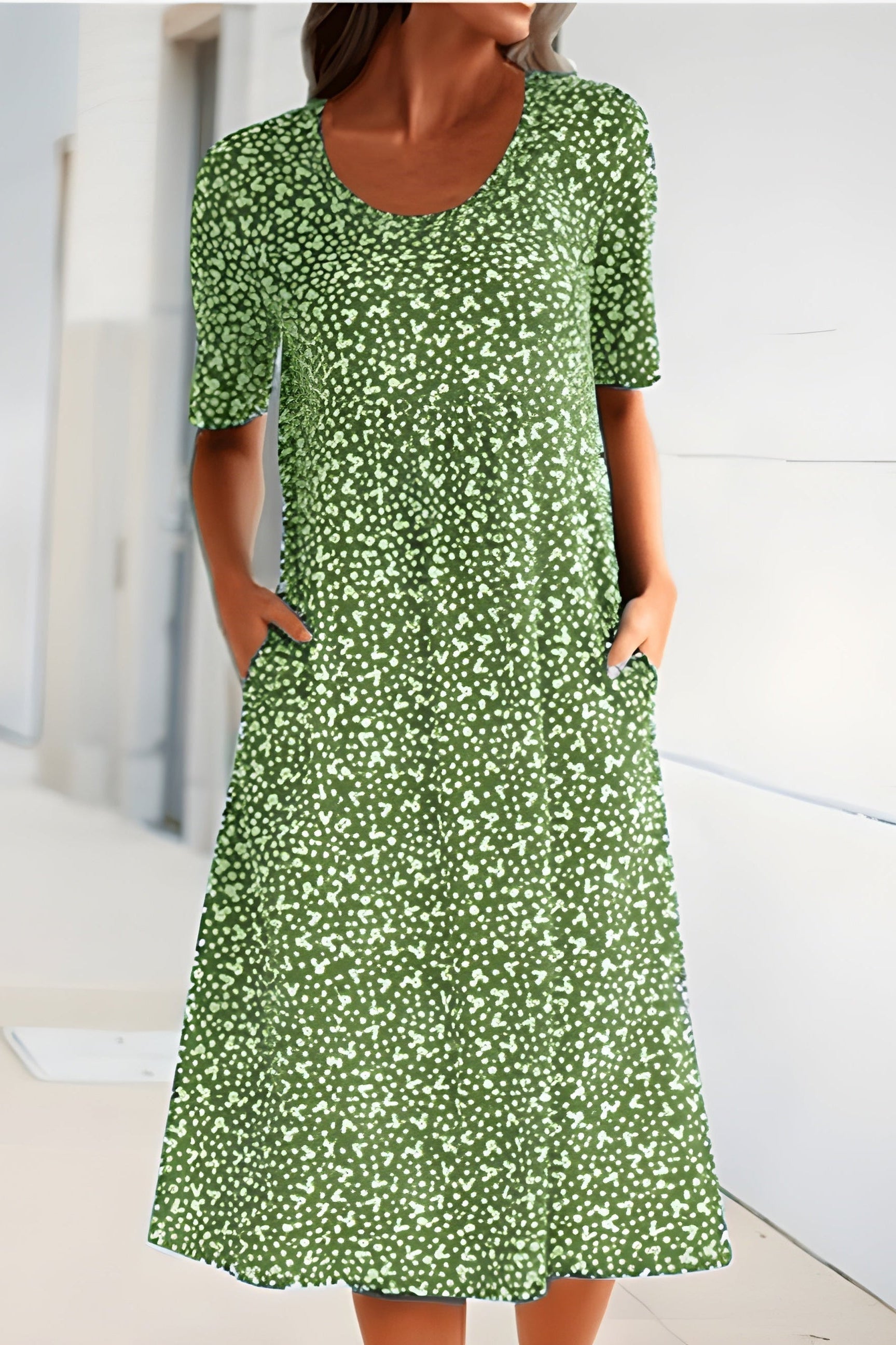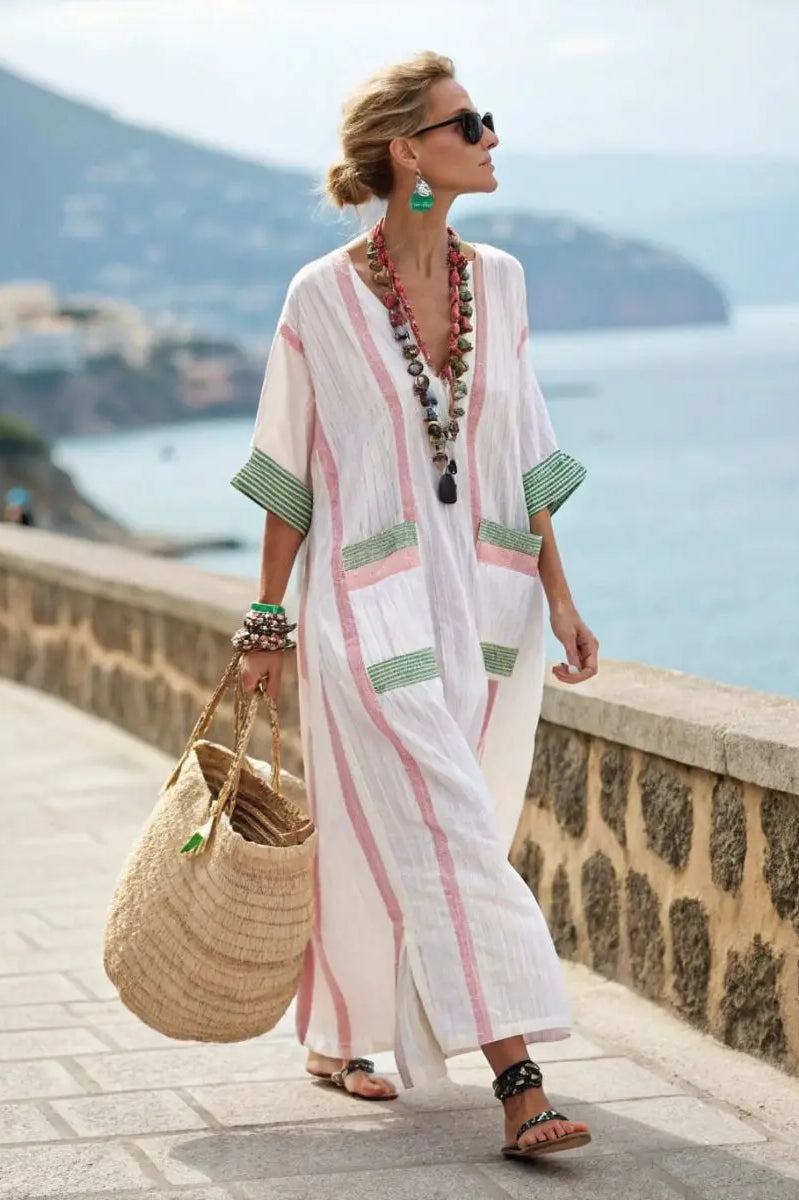 This best-selling dress is your go-to piece for effortless style and comfort, now in a fresh green tone with charming embroidered-style patterns. Its lightweight, breathable fabric and relaxed fit make it perfect for warm days, while the sleeveless design keeps you cool and chic. From beach strolls to brunch dates, this dress brings laid-back elegance to any outing.