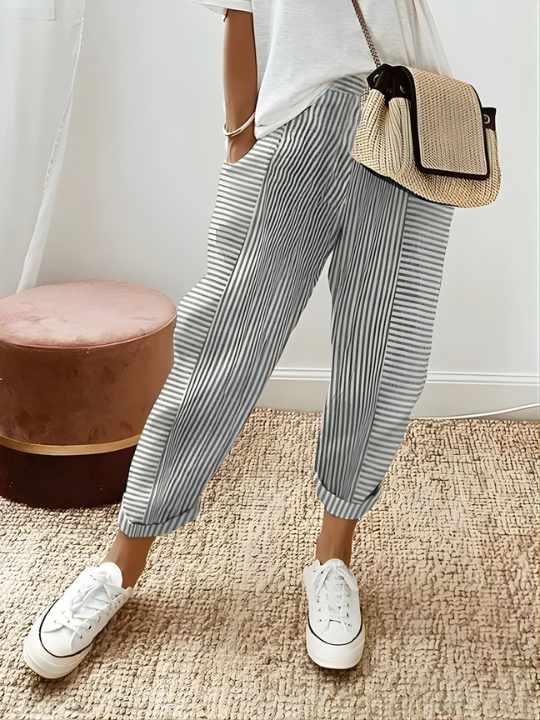 Welcome sunny days in style with the Dahlia™ Relaxed Fit Trousers—a wardrobe essential designed for women who love comfort without giving up elegance. Crafted from breathable cotton fabric and finished with a classic striped design, these trousers keep you cool, comfortable, and polished wherever your day takes you. From workdays to casual outings, Dahlia™ delivers effortless sophistication with every step.