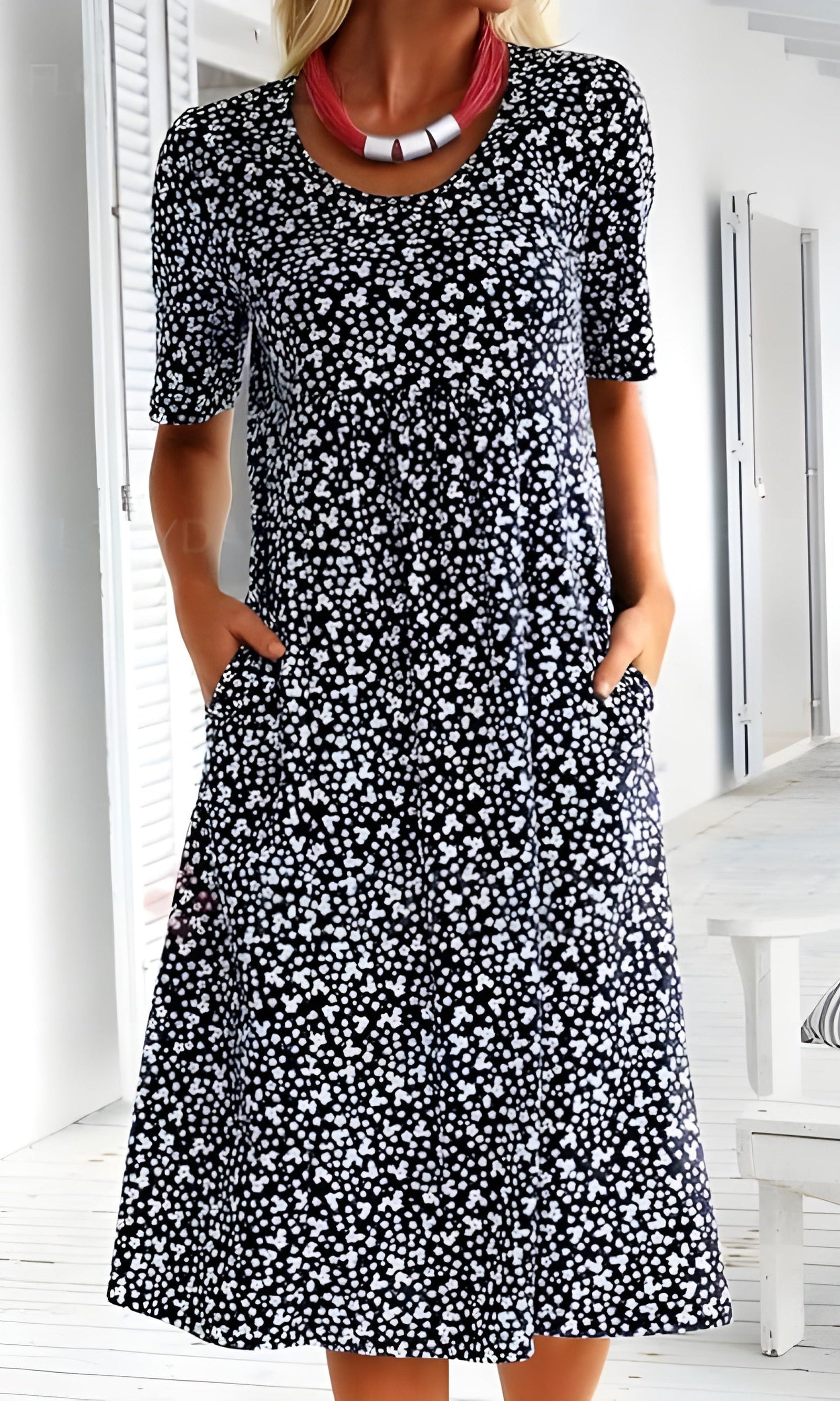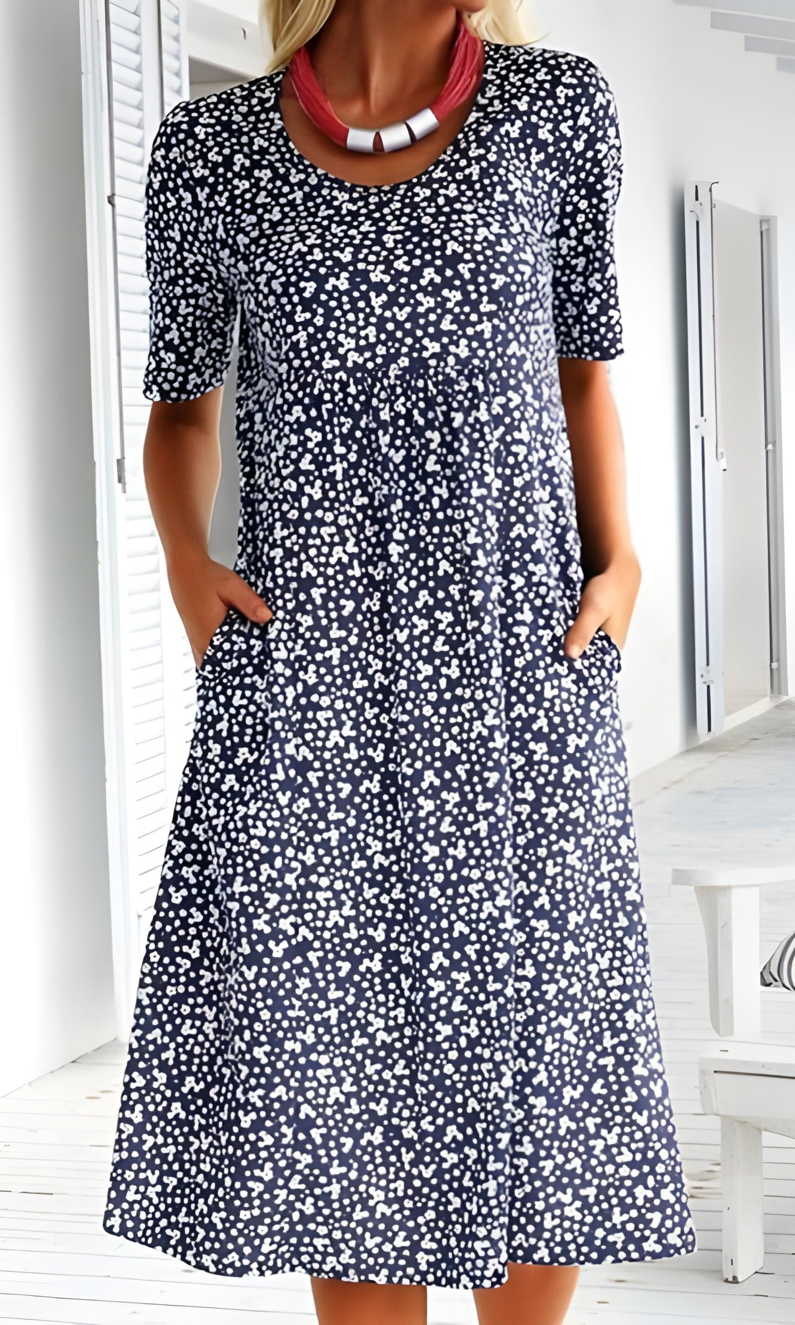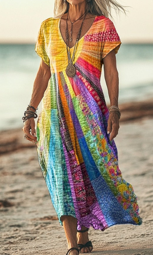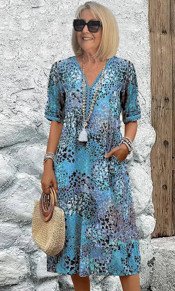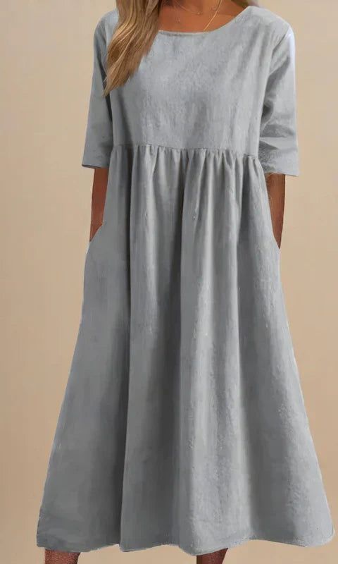 Our Cara™ Wildflower Midi Dress captures the beauty of a blooming meadow, featuring a soft grey base adorned with vibrant embroidered wildflowers in red, purple, and white. Designed for all-day comfort, this dress is made from lightweight, breathable fabric and offers a relaxed silhouette that moves with you. Perfect for seaside walks, casual lunches, or layering on cooler evenings, it’s a piece you’ll keep reaching for season after season.