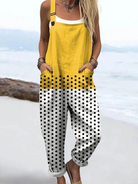 The Lemon Pop Jumpsuit blends retro charm with laid-back ease. Featuring a vibrant yellow top that fades into crisp white, dotted with bold black polka dots, it brings a fun, pop-art twist to your everyday look. With a relaxed fit, deep pockets, and adjustable straps, it’s designed for comfort and creativity—perfect for sunny strolls, weekend markets, or casual hangouts. Easy to layer and impossible to miss, this jumpsuit captures the spirit of carefree style.